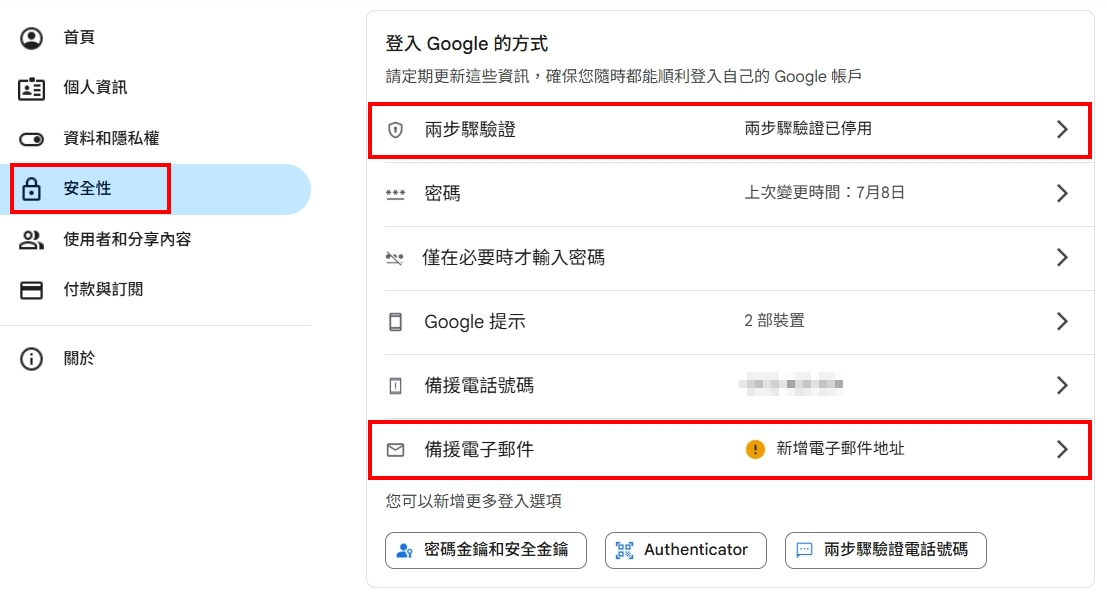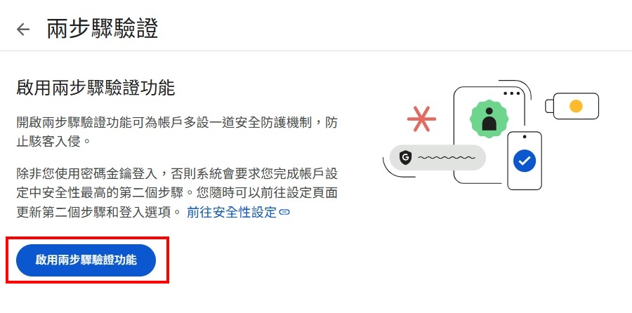 2.開啟兩步驟認證,以利日後認證碼傳送。